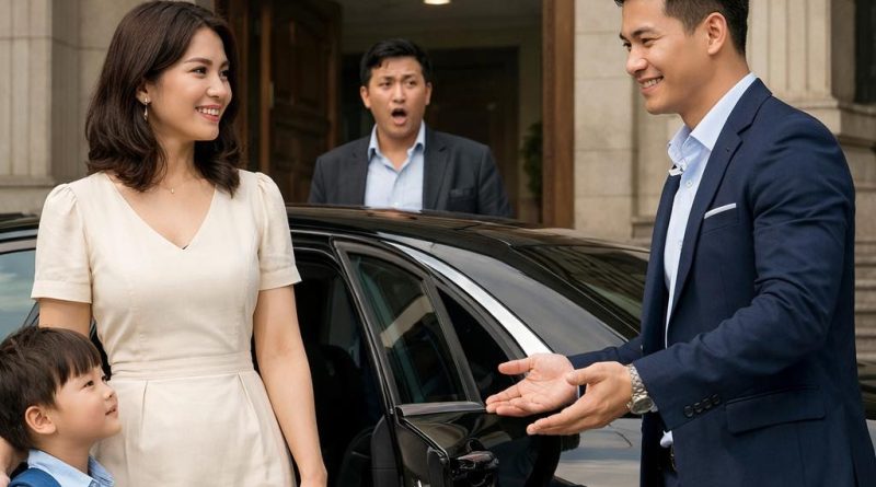 Đúng lúc đó, một chiếc Mercedes S-Class màu đen bóng lộn, sang trọng, từ từ trờ tới và dừng lại ngay trước mặt ba người…
