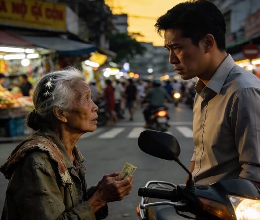 Một phụ nữ gầy gò, tóc lốm đốm bạc, áo khoác cũ sờn vai đang chìa tay: “Chú ơi… cho cô xin ít tiền mua cơm.” Tôi khựng lại. Gương mặt ấy… tôi không thể nhầm. Bà Thúy—mẹ vợ cũ của tôi.